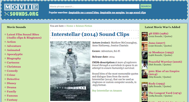 A long time ago, we showed you 10 sites to download famous movie quotes. Sadly, most of those have died or are no longer updated regularly. That's not a problem with Movie Sounds, where you can download a quote from 2014's Interstellar or from 1975's Dog Day Afternoon.